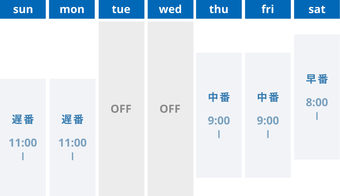 クラシアンの社員はシフト制で働いています。自分が働く事業所やチームに応じて働く時間を